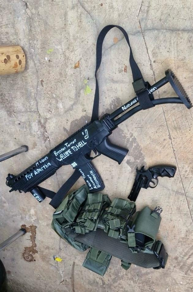 On its body, it says: "Brenton Tarrant. Welcome to Hell."