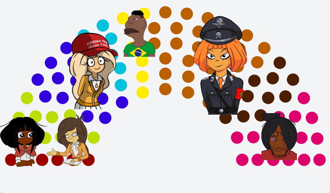>fuhrerprinzip>we will place people at coordinates not because of their deeds, but because of what they say.>you can't, the concept of human rights doesn't allow that in fullnessRepublicanism isn't about human rights though. It's about election, no matter who or how elects.