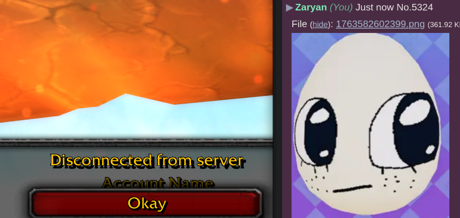 boob i cant play turtlewow anymore im about to get permabanned from all my ips from the zarty for posting a filtered hashed image because i took the red pill its over