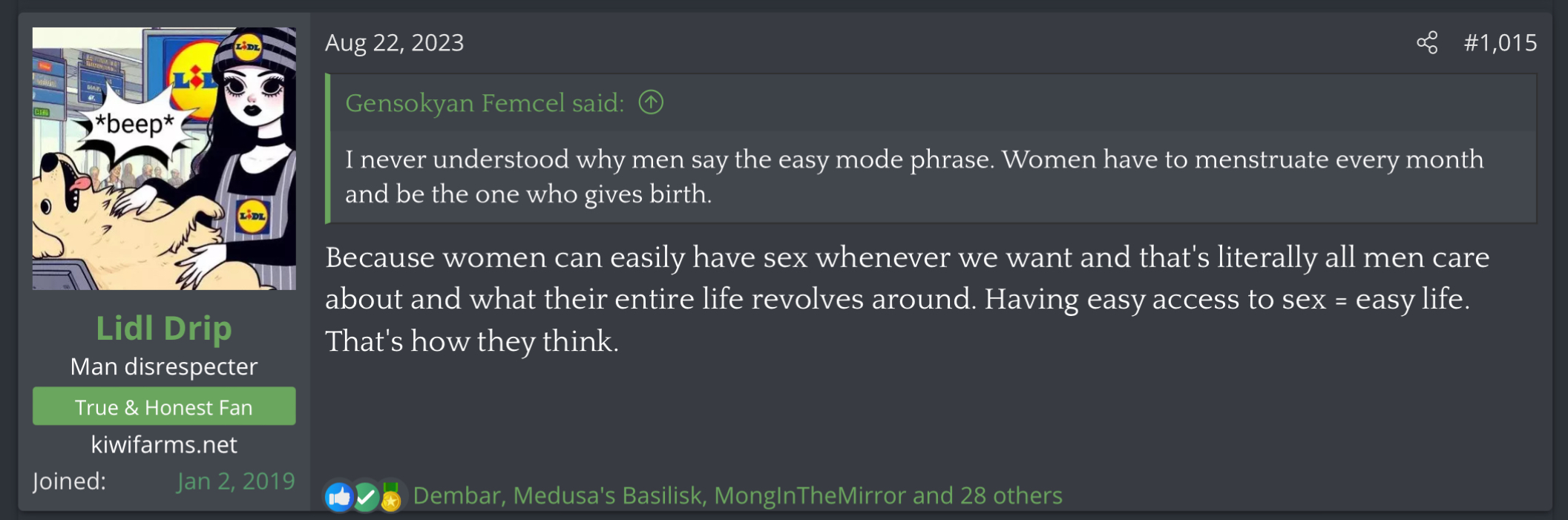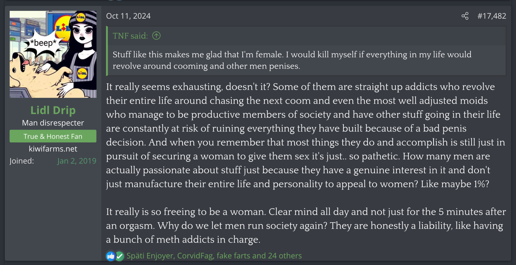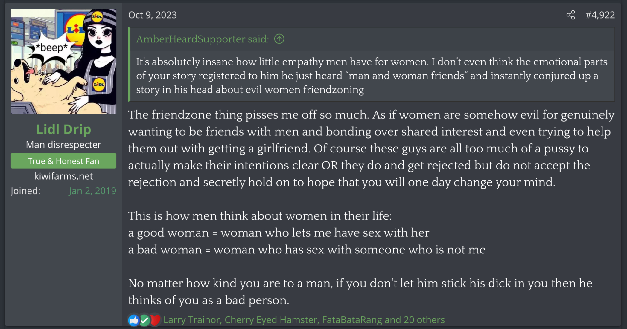 >>27646She still doesn't fully get the weaknesses of women. Yet they could keep going after doing something bad but it doesn't excuse them from their sin. Once a woman gets callous at the small things she knows she does it wrong, it adds up over time and no one calls her out on it. This is why so many women have worse fantasies because they realize they could go scot-free over the worst things imaginable without every taking accountability for it.