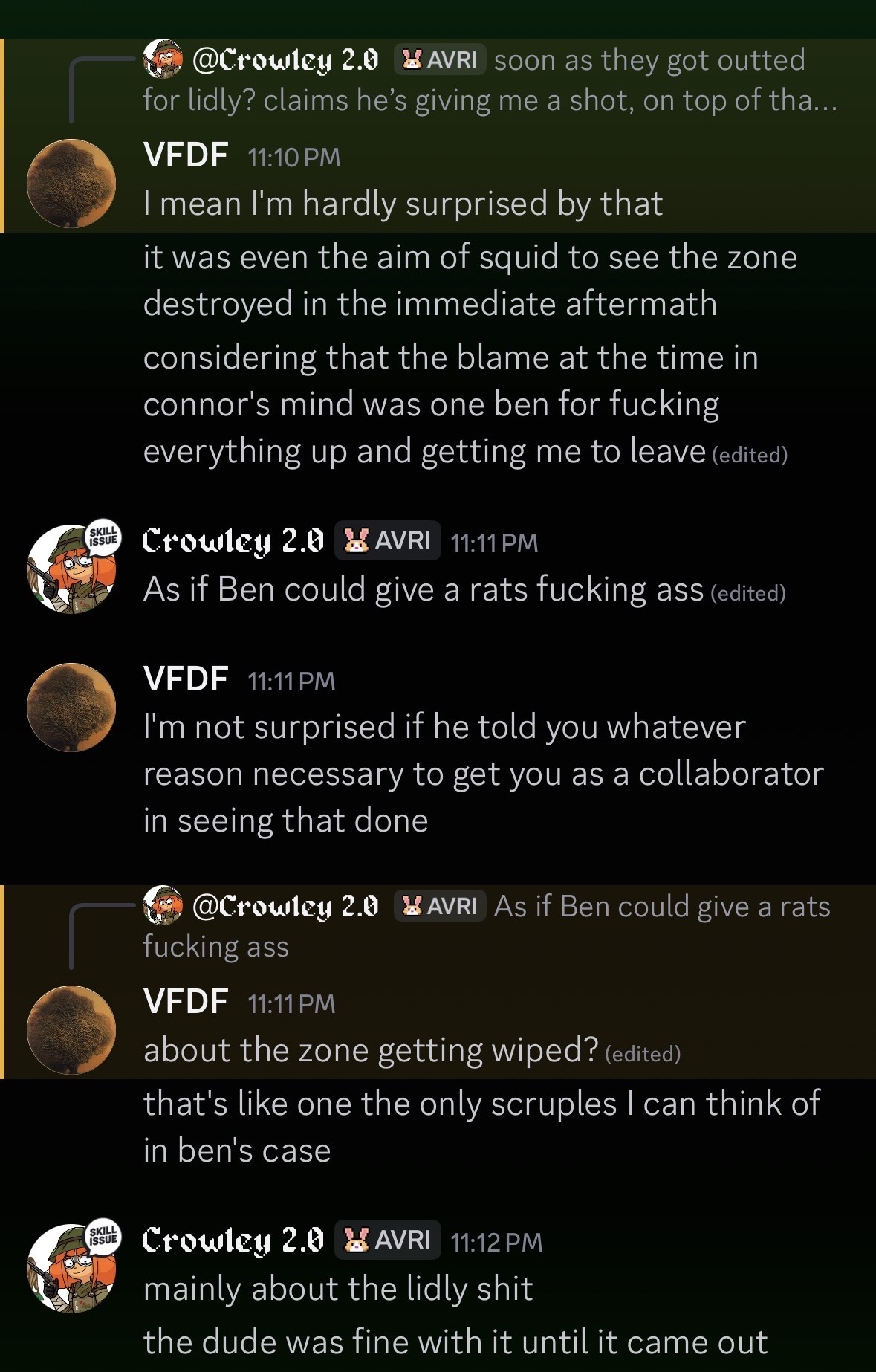 So my shitlist involves, Jonesy, Squiddo, Ben Elohim and fucking Zelligfan