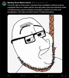 >>37808And what do you get by voting for someone who's just going to keep conceding ground, since his only directive is having power and not actually using it?
