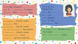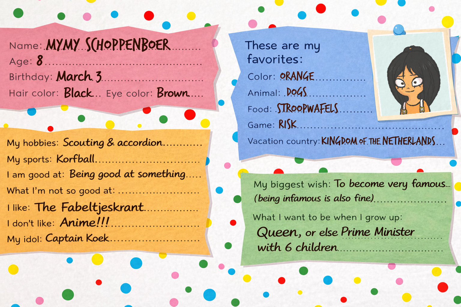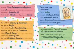 the friendbookjes are clearly the current personalities and interests of the girls projected onto their younger self and with this perspective it is makes more sense.