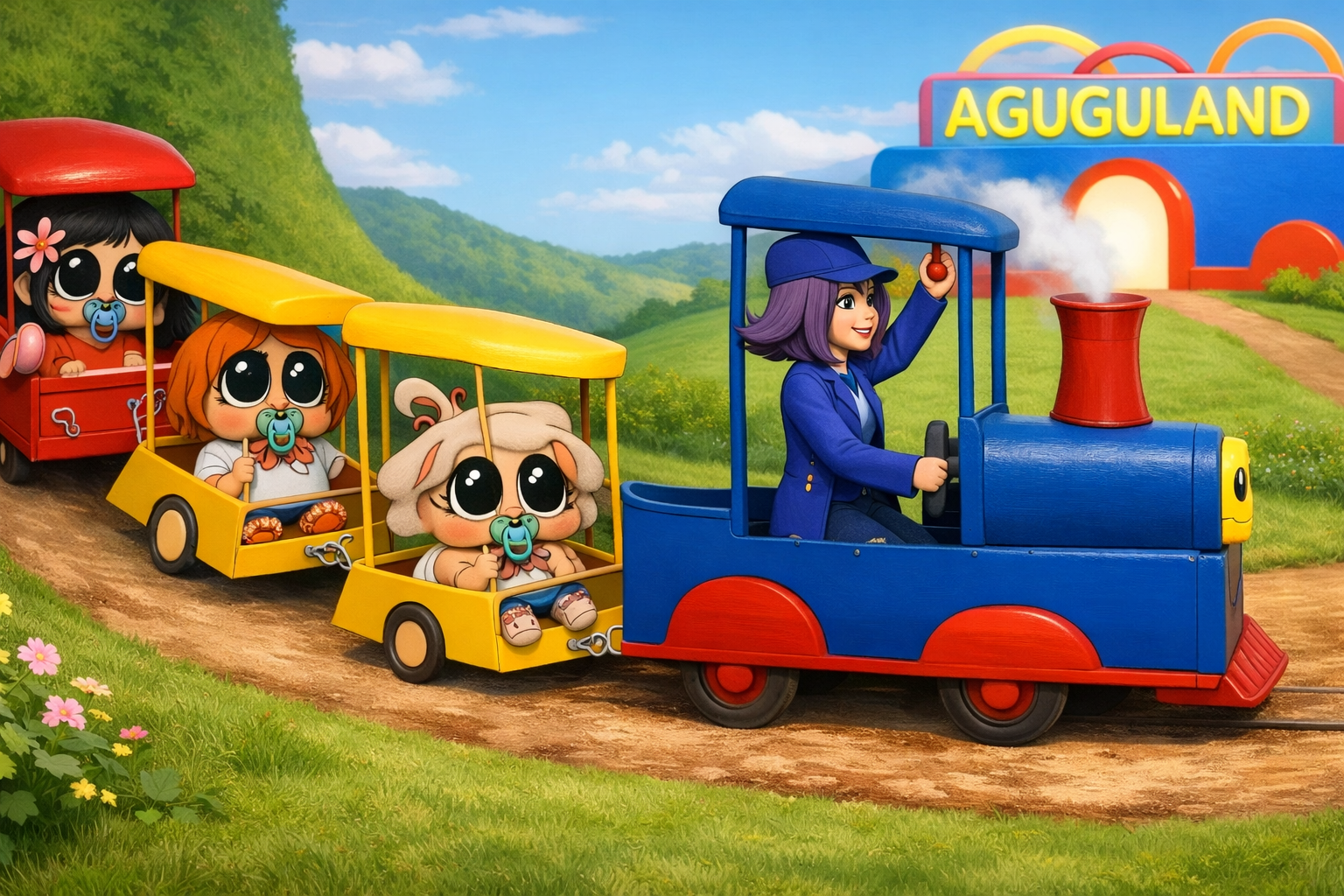Miss Vera is their babysitter and teacher, she's also a train conductor and has a wonderful colorful agugu choo choo train, which she uses to take them to a wonderful journey through sunny plains, to a magical place called Aguguland where they meet other agugus