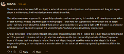 From the garbled mess that I could gleam through, from what I could understand, is that this seems to be moderator problems involving one mod blaming others, throwing them under the bus, not taking responsibilities, and generally being upset that other people are fed up and don't like him as a mod, I think. I gave up halfway since I couldn't stand reading the shit Google kept putting out, but that seems to be what's being discussed in this vid.