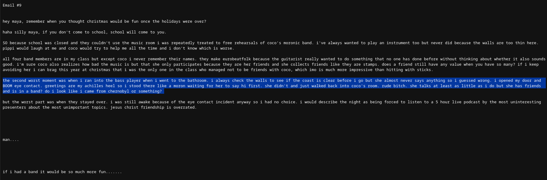 >>42162its implied multiple times that coco is a schizo bitch that abuses maya and beats her up