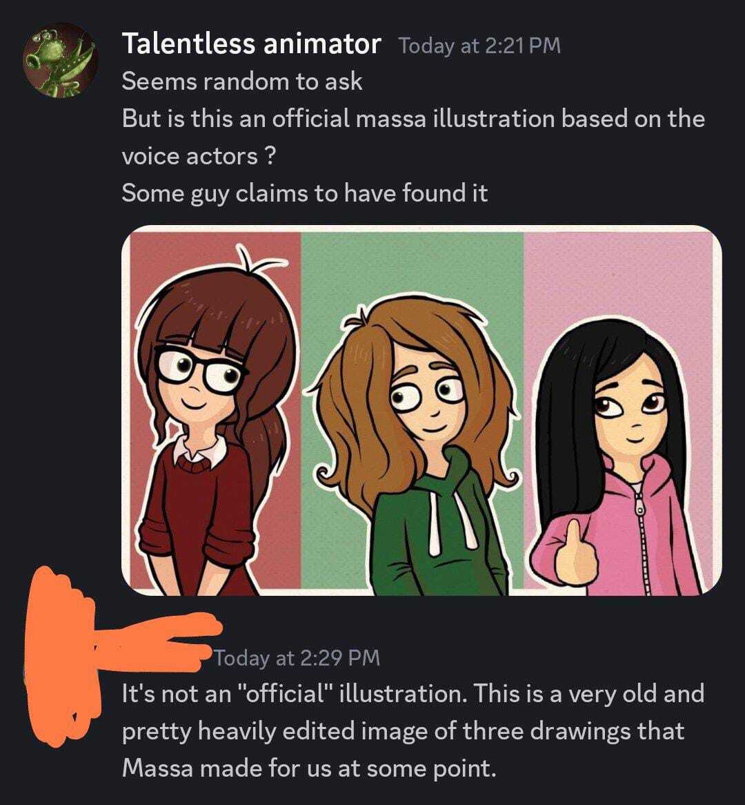 >>71787story of how massa acquired these voice actors: he went to anime cons in netherlands, and told all the girls he saw: "me is a widdle animatorgugu me make funny owange dutch girlsgugu pwease join my pwoject pwease pwease pweasegugu" and then he could convince these three girls and then vera's voice actor joined out of spite o zoiets